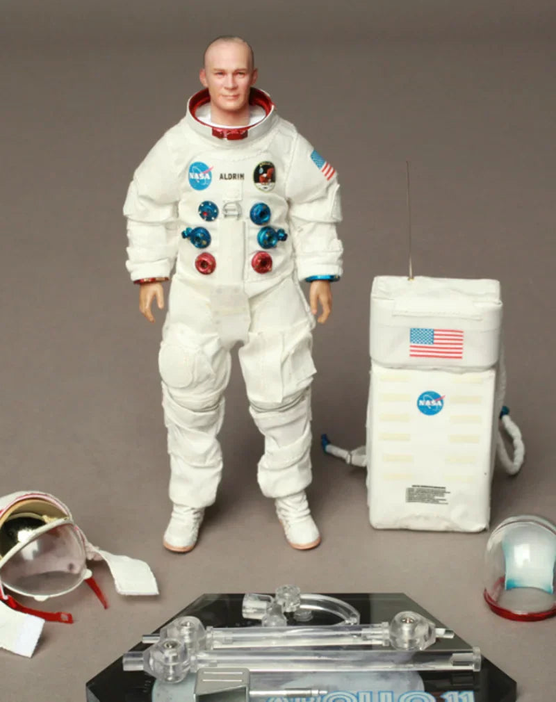 Highly detailed 6" collectible figures representing Apollo 11 astronauts Neil Armstrong, Buzz Aldrin, and Michael Collins — ideal for historical and sci-fi collectors.
