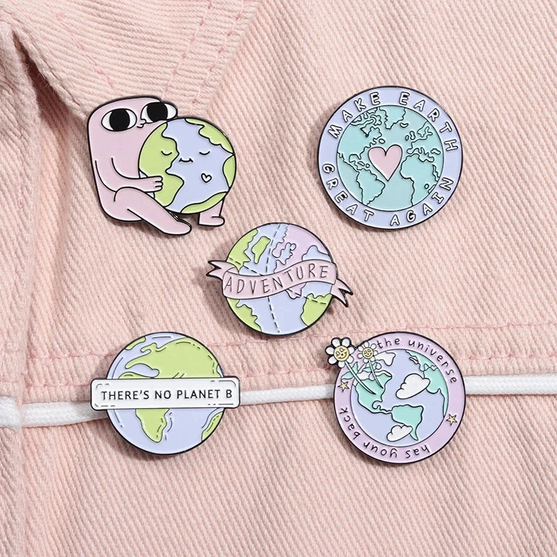 Short Description: Spread environmental awareness with this inspiring collection of Earth-themed enamel pins promoting planet protection — perfect eco-friendly accessories for conscious kids and adults!