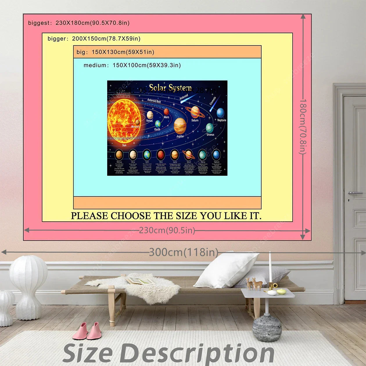 Brighten up your space with this vibrant Solar System Tapestry — a detailed planetary chart that’s both educational and decorative, ideal for bedrooms, living rooms, offices, or classrooms.