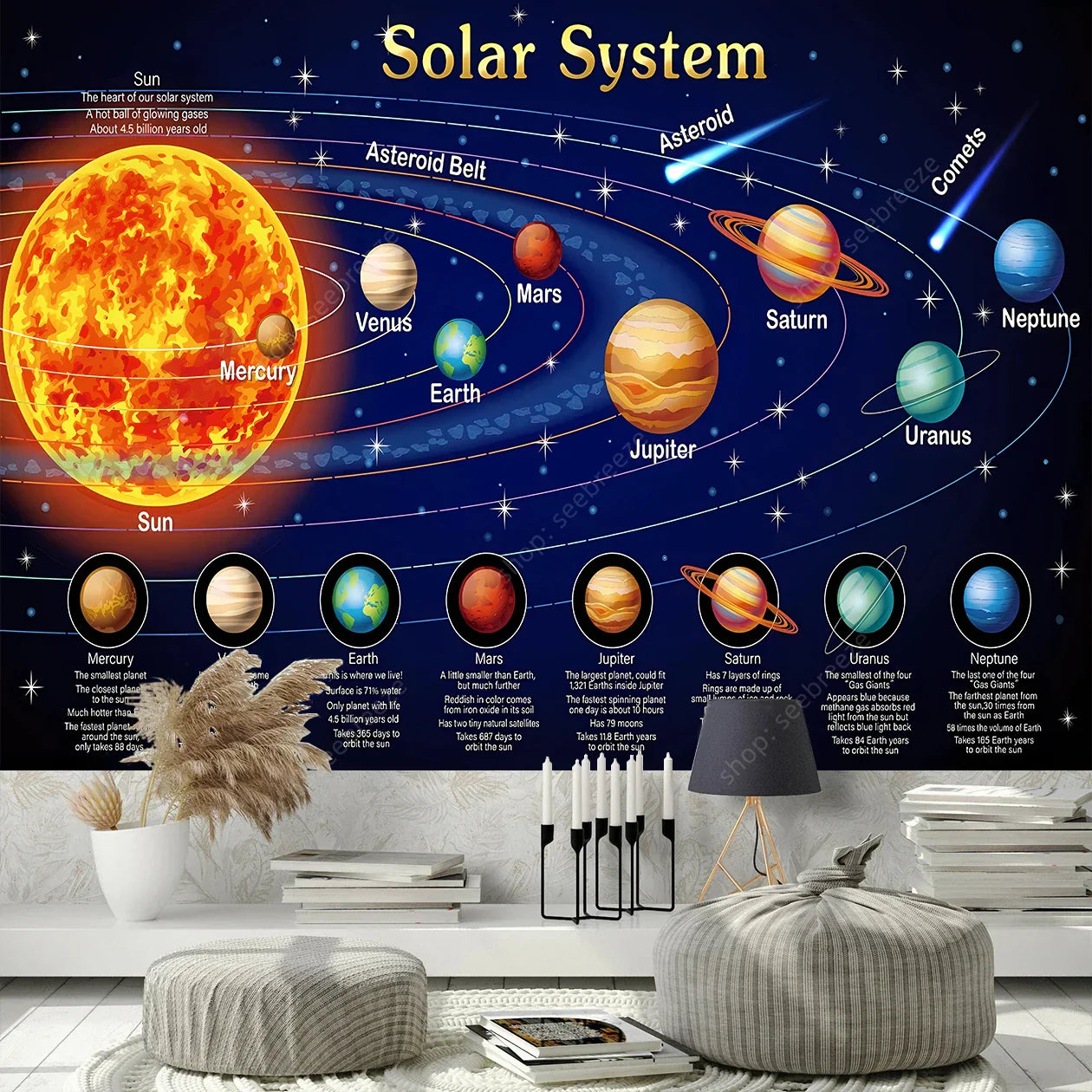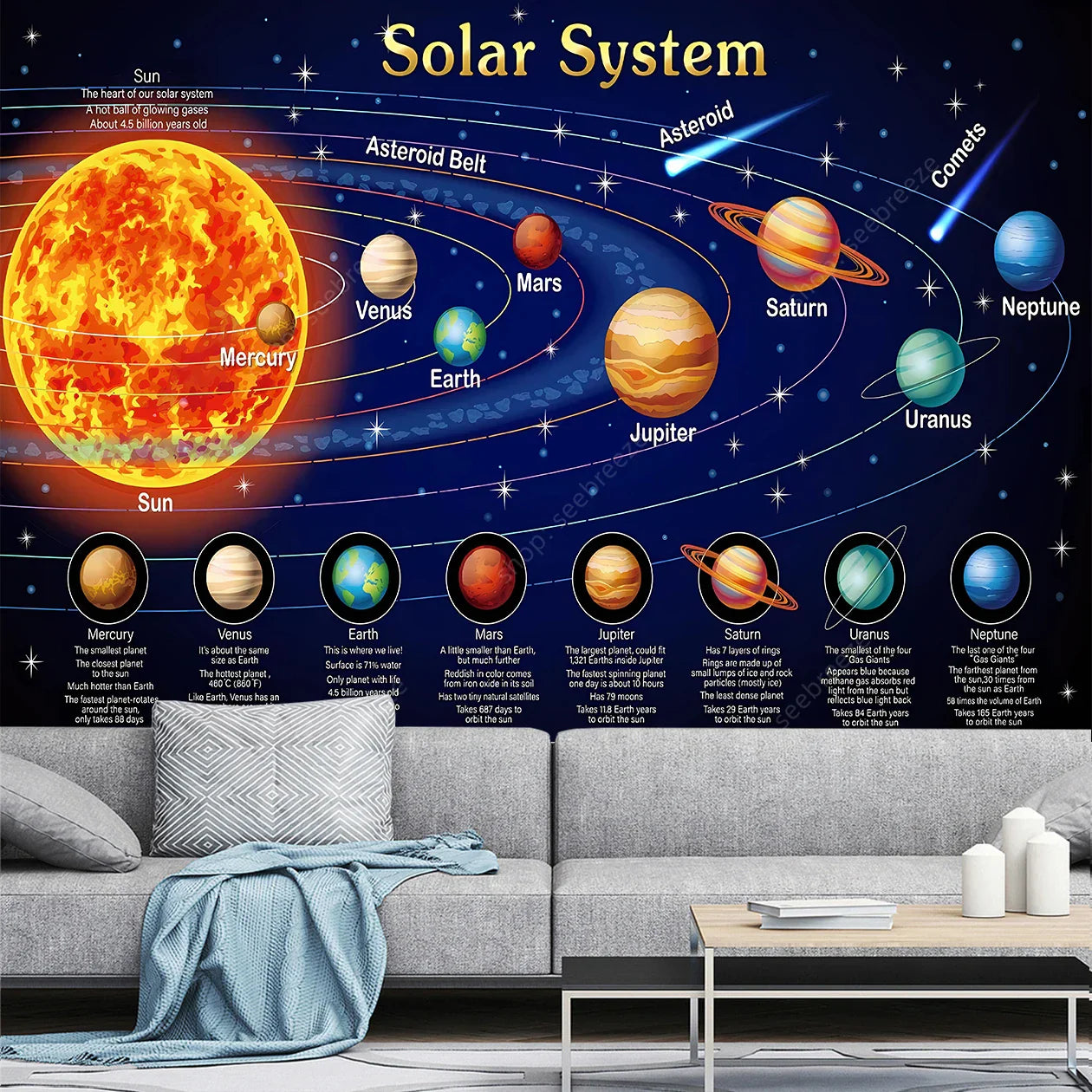 Solar System Tapestry – Educational Astronomy Wall Art