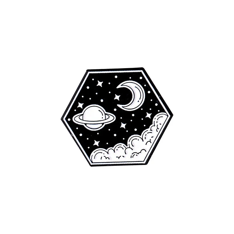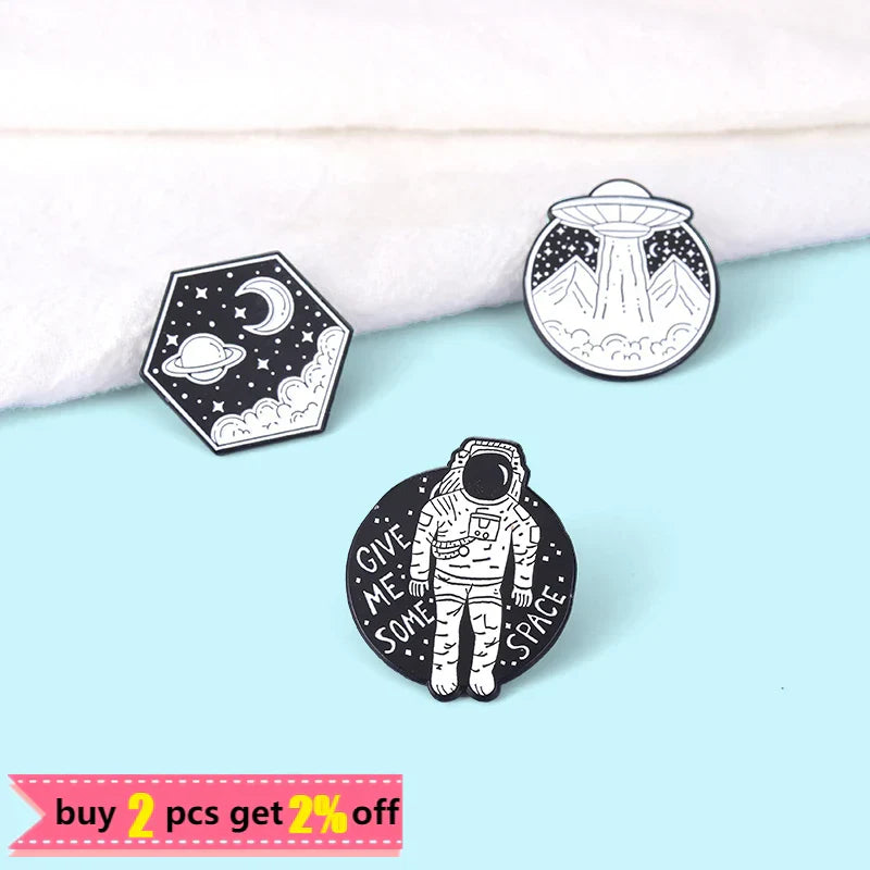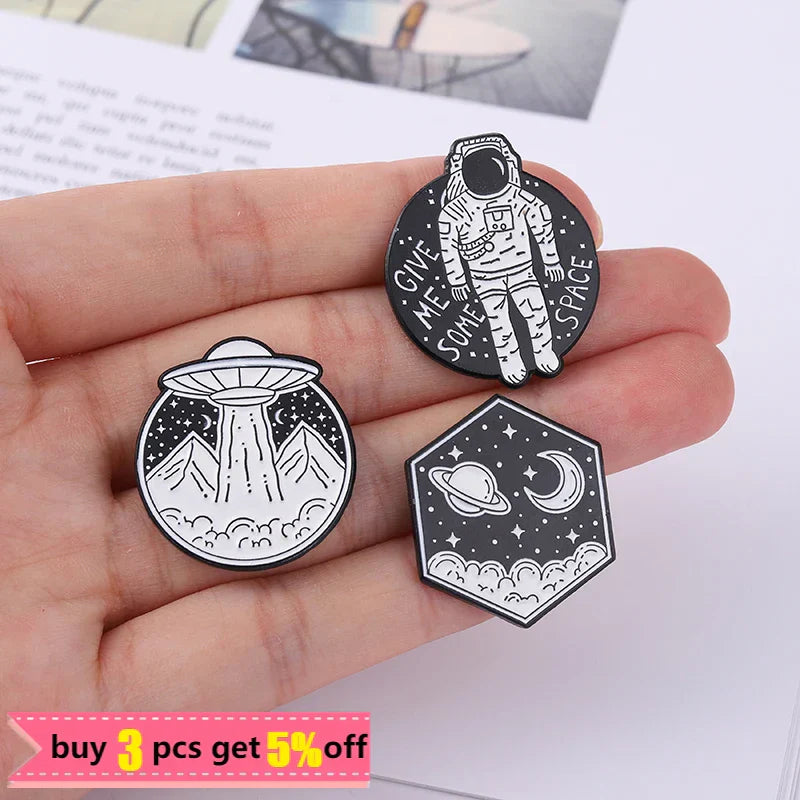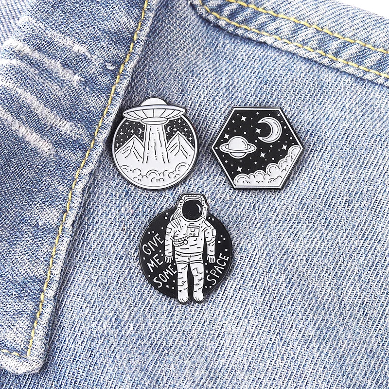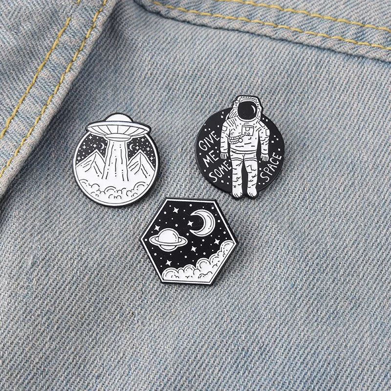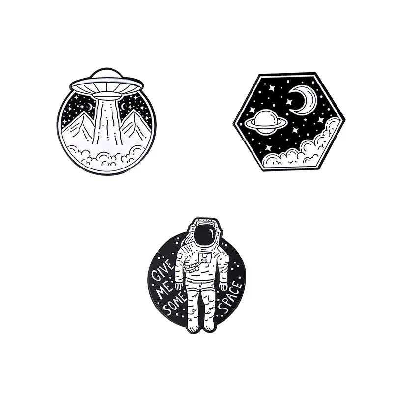 Universe Adventure Enamel Pins – Astronaut & UFO Cartoon Brooch Set